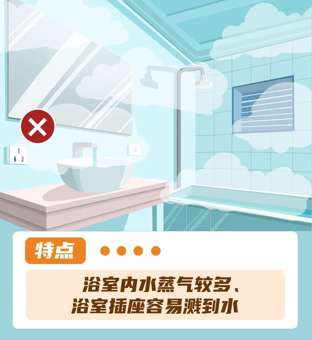 冬季沐浴之后,浴室内水蒸气较多,要定期检查浴室内电源开关、插座的安全防护,应使用带有漏电保护功能的设备,避免漏电。沐浴或洗手后,要擦干双手再接触各类开关。
